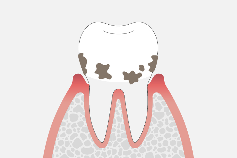 炎症が歯ぐきだけでなく、歯を支える骨(歯槽骨)など歯周組織へ及び、骨が減っていく病気です。