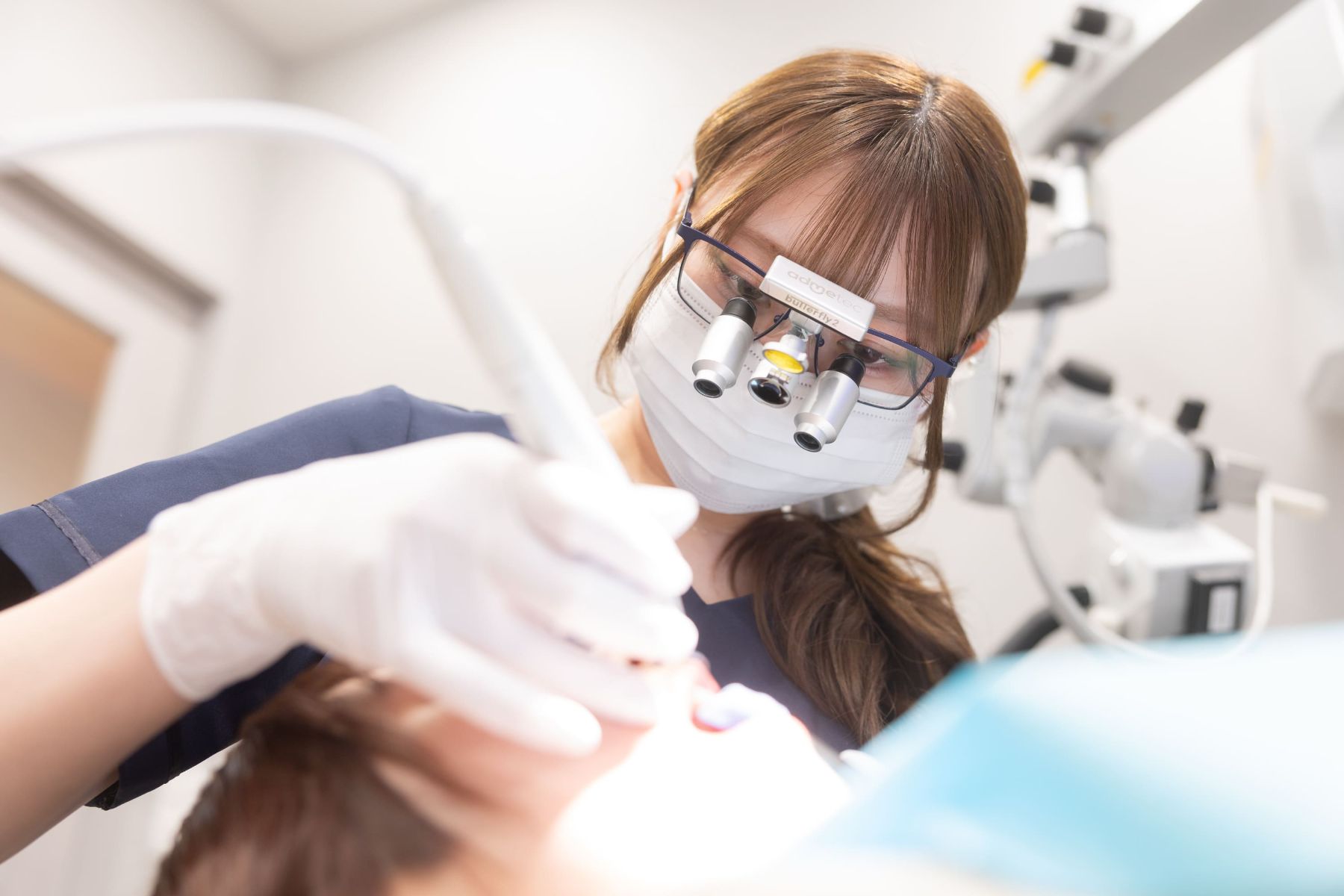 エアフローは、微細なパウダーと水、空気の力で歯の表面の汚れや着色を落とすクリーニングです。