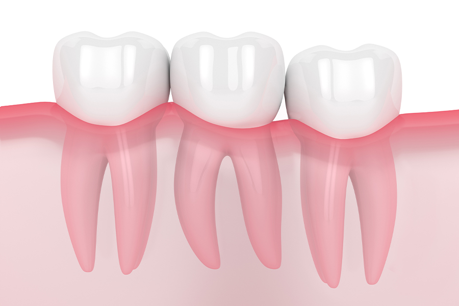 一見トラブルがなさそうに見えても、内部で炎症を起こしたり、手前の歯を圧迫して歯並びや歯ぐきに悪影響を及ぼすことがあります。